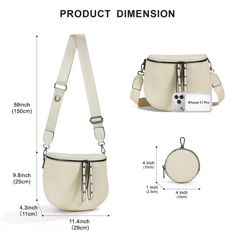 Features a main zipper compartment + interior pockets + rear secure pocket → neatly stores your phone, wallet, keys, and even a small water bottle.No more digging around—everything has its place, ready the moment you need it.